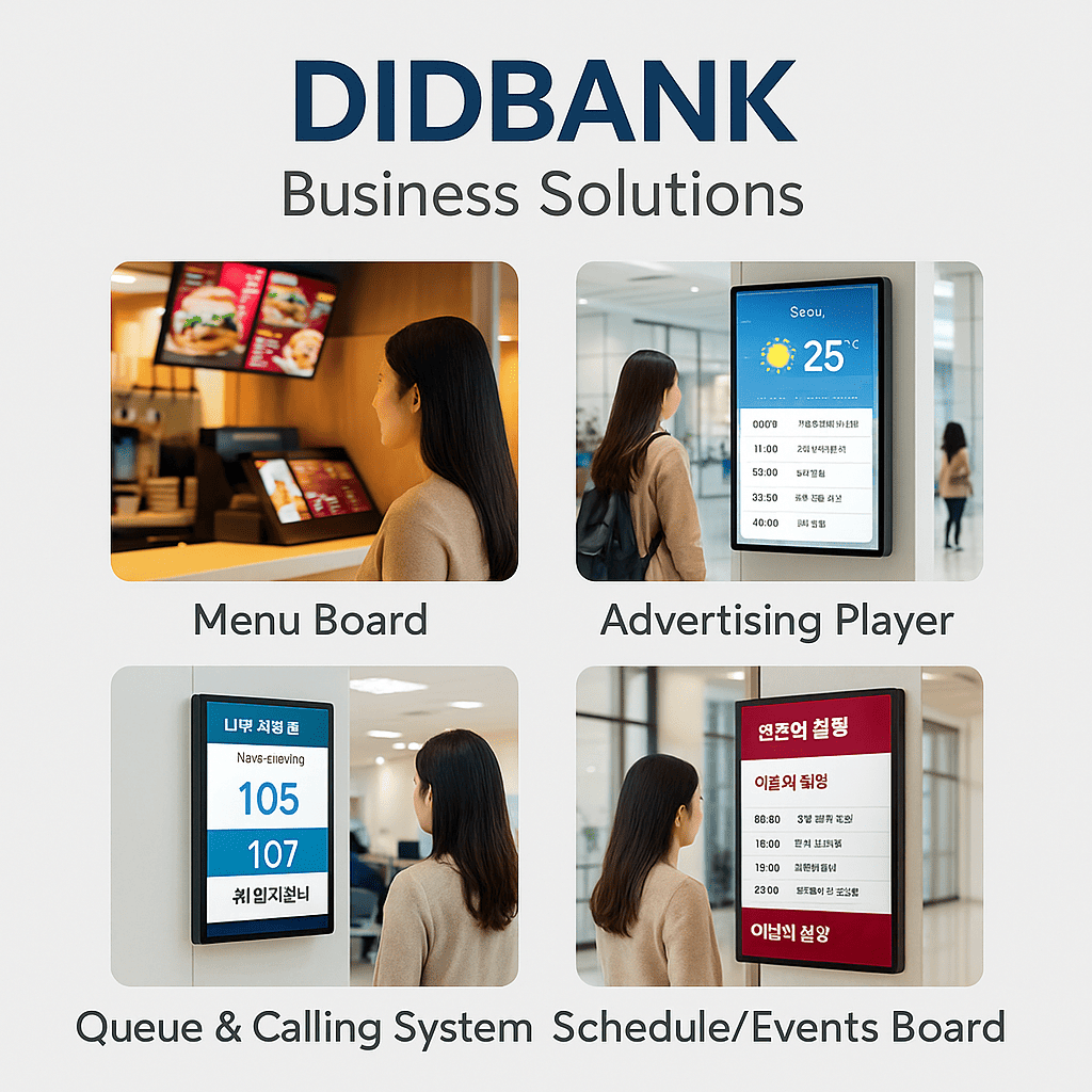 디아이디뱅크는 축적된 현장 경험과 자체 개발 기술을 바탕으로, 실용성과 기술력을 겸비한 최적의 사이니지 솔루션을 제공합니다